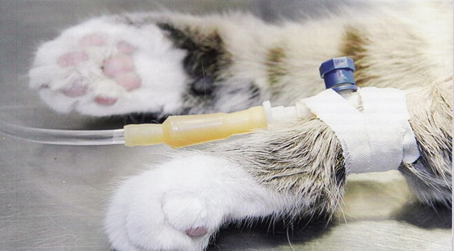 Химиотерапевтические средства вводят внутривенно, подкожно или перорально, в зависимости от типа препарата, протокола. Процедура занимает от нескольких минут до нескольких часов. После введения средства животное находится под наблюдением врача для купирования возможных побочных эффектов.